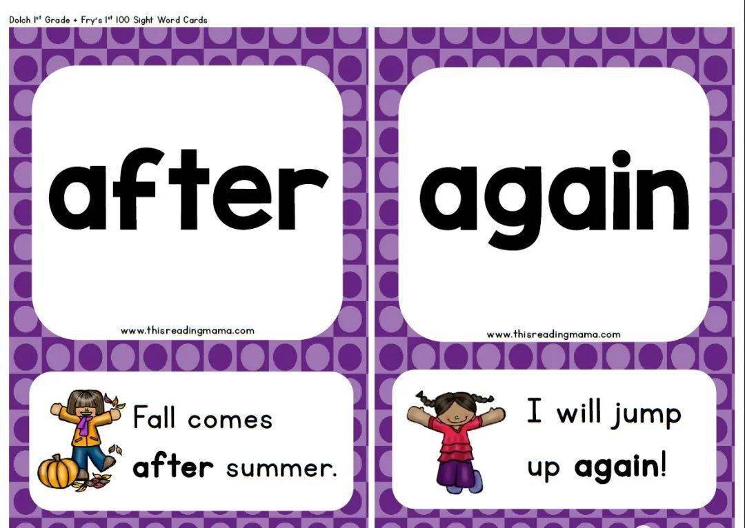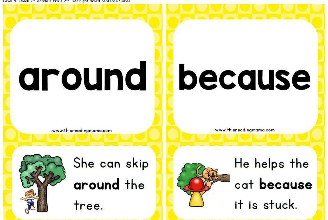 Sight word是指一些常见的英文单词,也是指一看到就能立刻反应出来意思的词汇。有些sight word的念法不符合phonics的规则,而且词意也不容易通过图片来表达,所以通过反复出现来记忆是最为有效的。