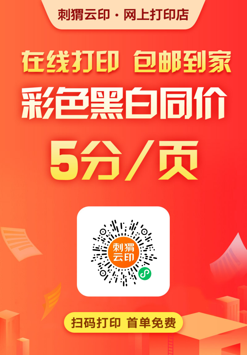 方案一 : 刺猬云印 ,最经济实惠的打印方案, 黑白彩印都是5分钱/面, 6.6包邮 !十分推荐大家使用刺猬云印!